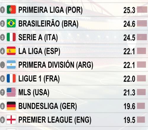 当地时间10月13日,瑞士足球天文台统计了各国联赛每90分钟的犯规情况,其中葡超以25.3次犯规位居榜首,巴甲以24.6...