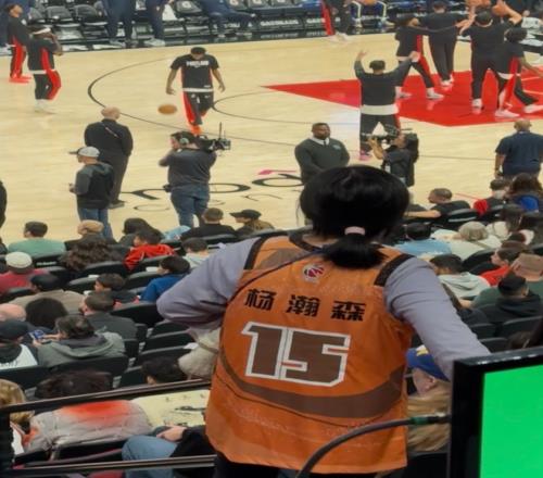 这场比赛有身穿杨瀚森CBA球衣的中国球迷来支持小杨,小杨已经成为中国的全民偶像。