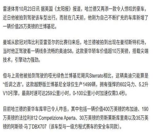 信源来源:雷速体育2025-10-23 太阳报:哈兰德又添置一辆奥迪S8,前几天刚买兰博基尼