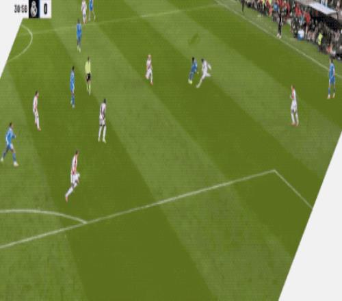 巴列卡诺将小快灵的特点发挥出来,第17分钟,拉提乌插上后的小角度射门,被库尔图瓦奋力扑出。