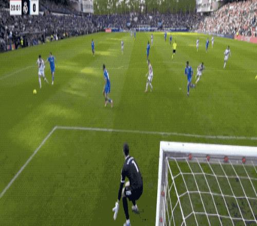 2分钟后,皇马继续猛攻,卡雷拉斯下底传中,之前在角球进攻中还没有回防的阿森西奥无人盯防头球攻门,遗憾顶偏。